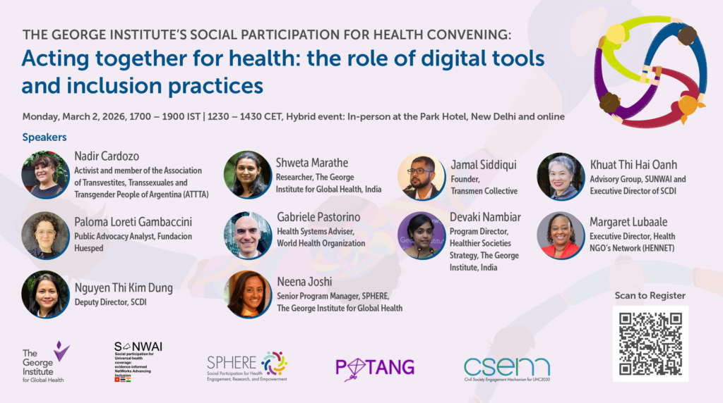 For The George Institute’s Social Participation for Health Engagement, Research and Empowerment (SPHERE) project, digital platforms – such as messaging apps and social media – have become vital tools for enabling participation where geography, safety, or social barriers limit in-person engagement. As digital platforms increasing shape how communities connect, organize, advocate, and participate in decisions that affect their health, understanding their potential – and their limitations – has never been more important.