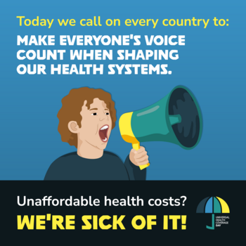 The 2025 UHC Day campaign focuses on the lived experience and making on making everyone’s voice count when shaping health systems. Join the campaign today to call on government decision-makers to act urgently as unaffordable health costs are making our communities poorer and sicker!